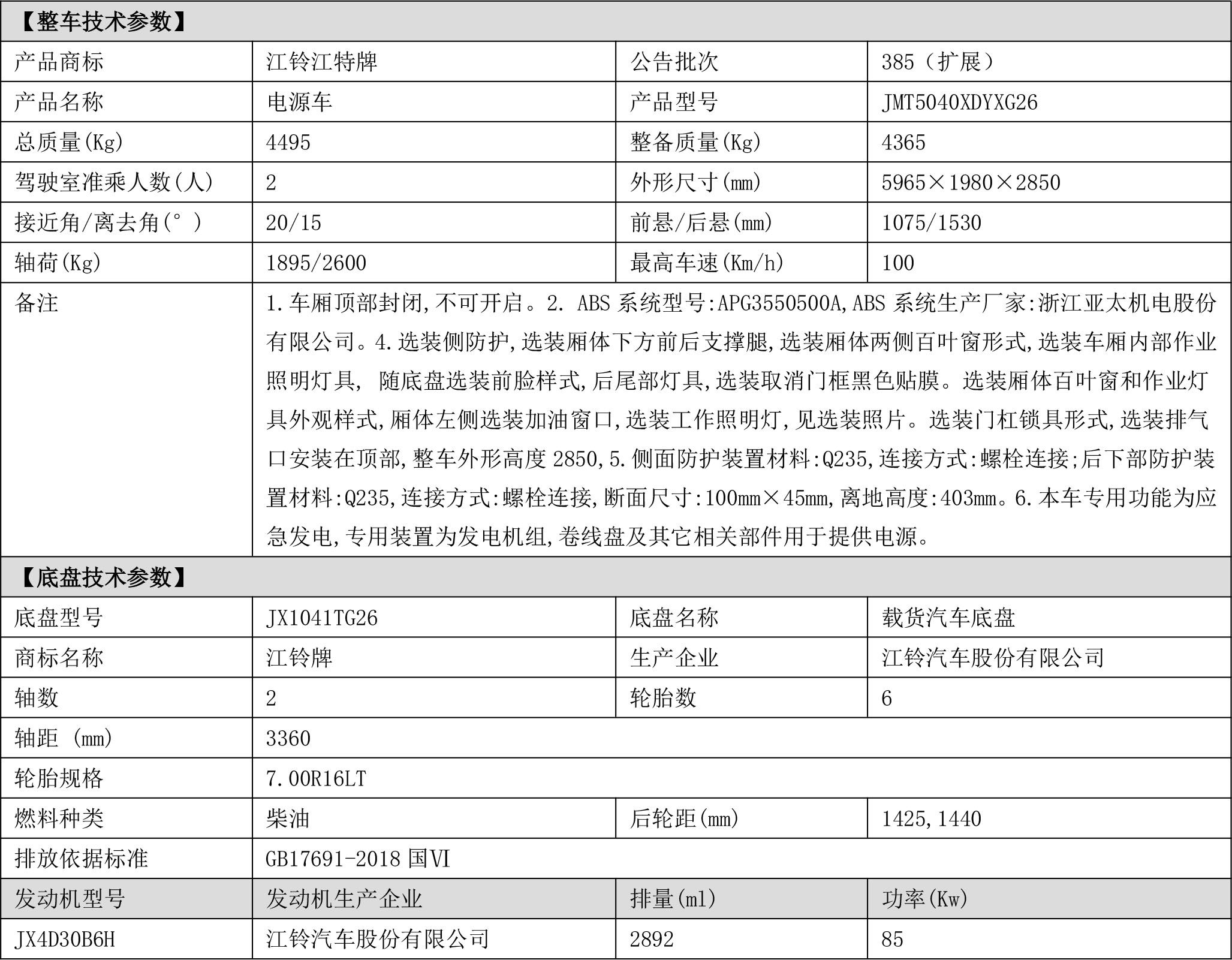 江铃江特牌顺达单长电源车(蓝牌)